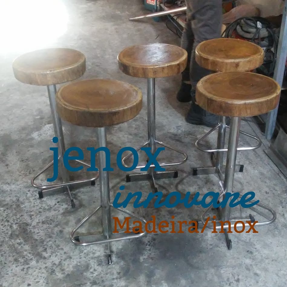 Banquetas desenvolvidas por nos , neste lindo projeto fazemos a união da madeira com inox , não poderia dar errado , não é?
