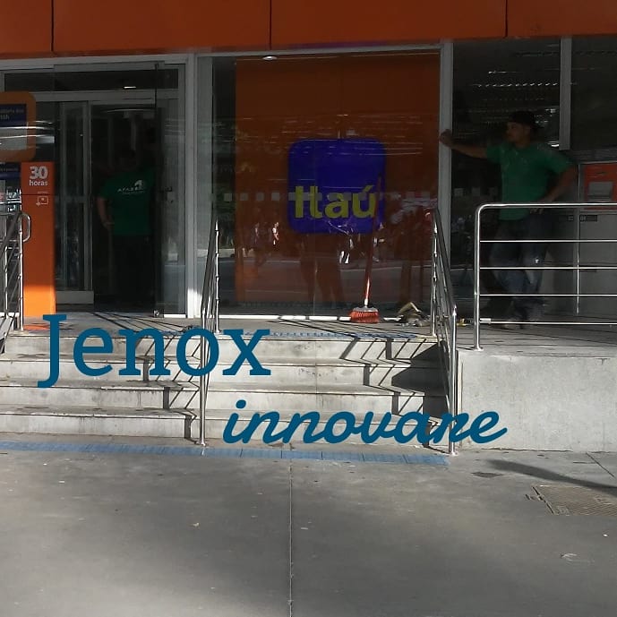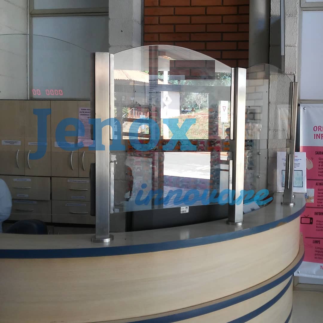 Colunas em aço inox e vidros temperados , proteção para atendimento ao publico